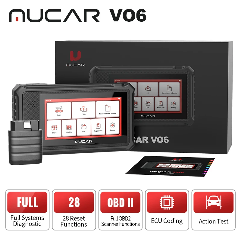 MUCAR VO6 как диагностическое устройство OBD II наивысшего уровня 2021 для пользователей, поддерживаемых DIY, включает считывание кода/очистку потока данных, испытание на приведение в действие, специальные функции и т. д.