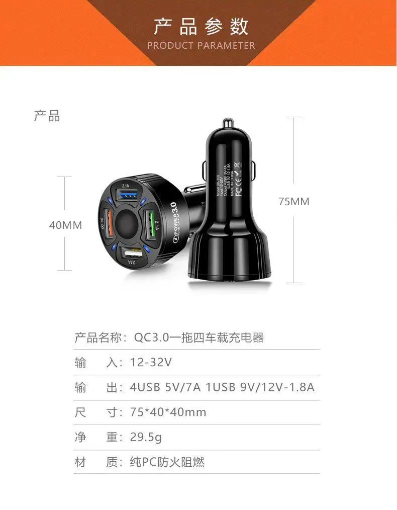 Автомобильное зарядное устройство с 4 USB-портами, 32 в