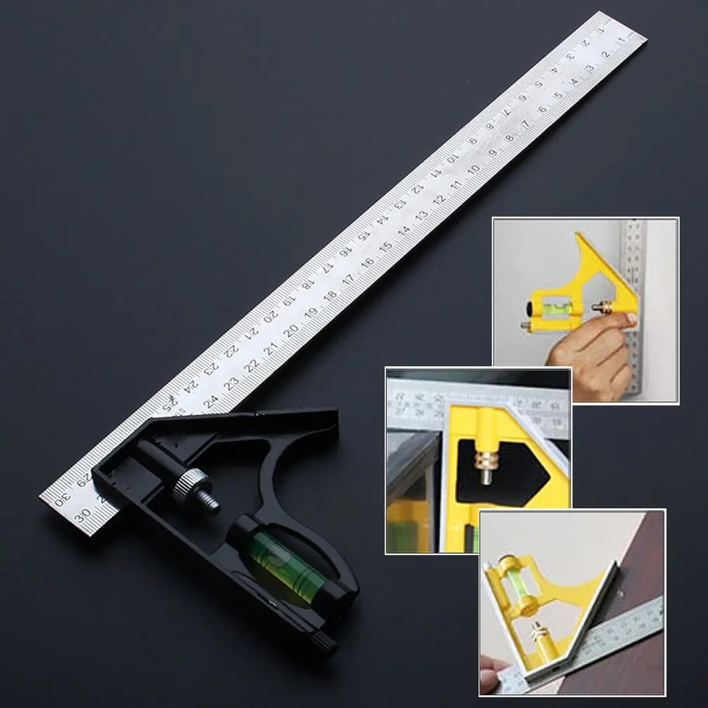 300 мм Регулируемая комбинированная квадратная угловая линейка 45 90 градусов с пузырьковым уровнем Многофункциональный измерительный инструмент Лидер продаж