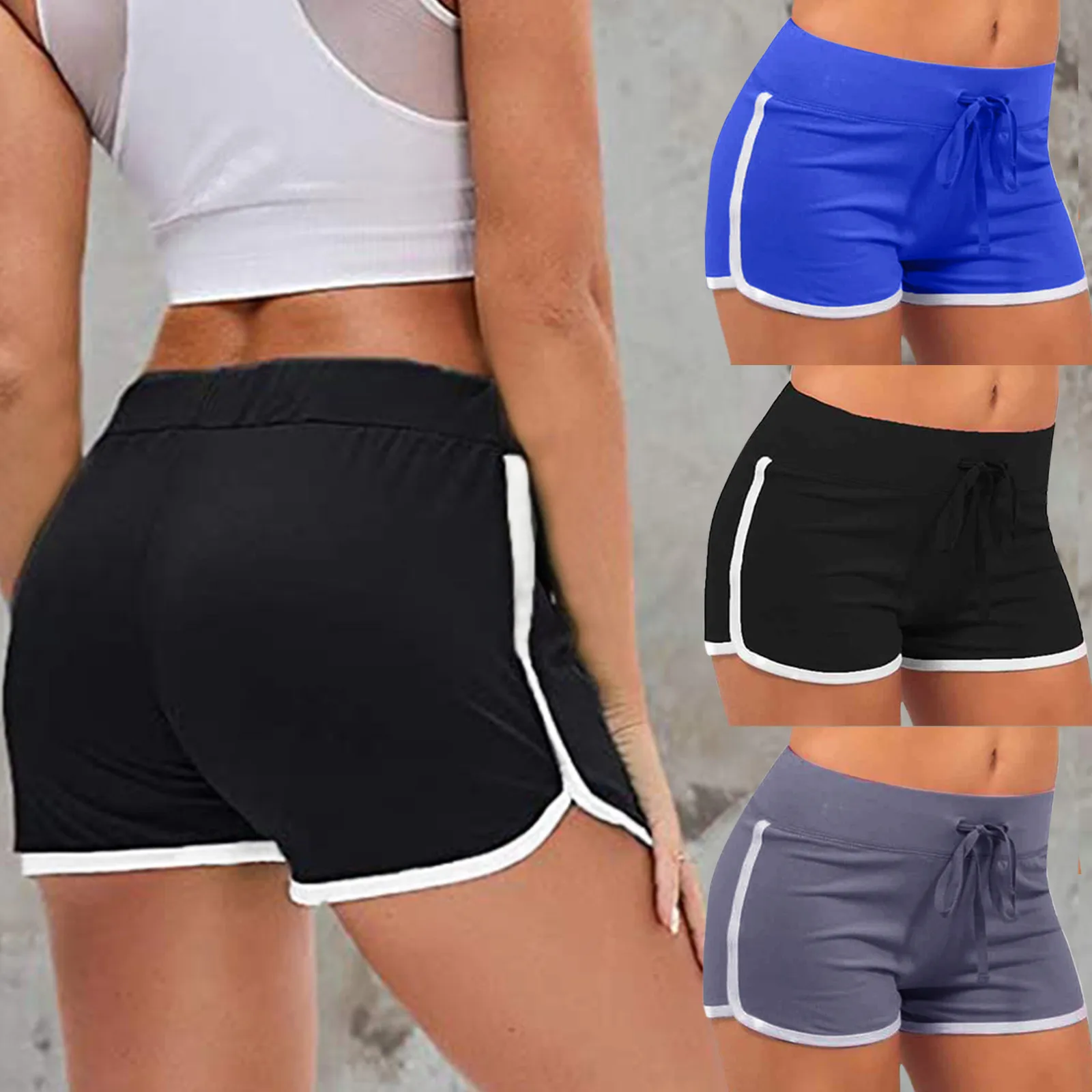 Шорты женские для отдыха, повседневные свободные контрастные с Боковым Разрезом, с эластичным поясом, йо-га, летние