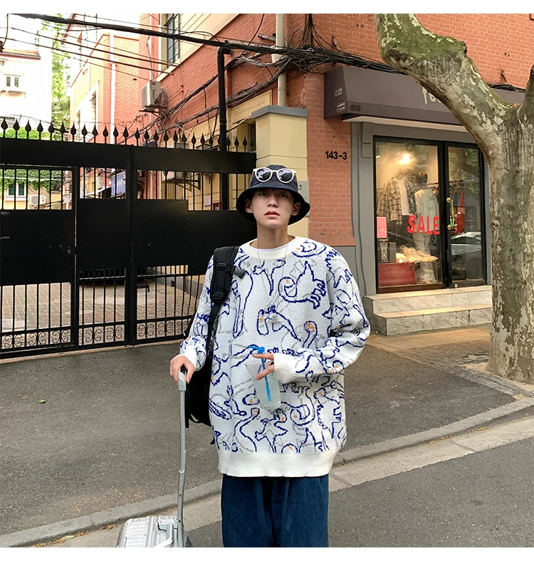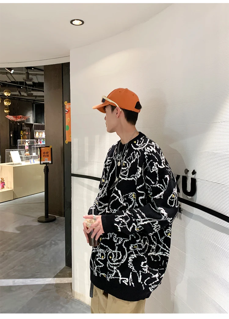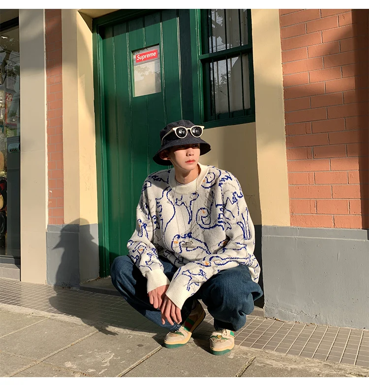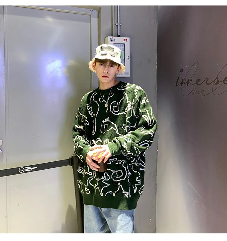 Пуловер мужской вязаный, оверсайз, модные свитера, осень, 2021