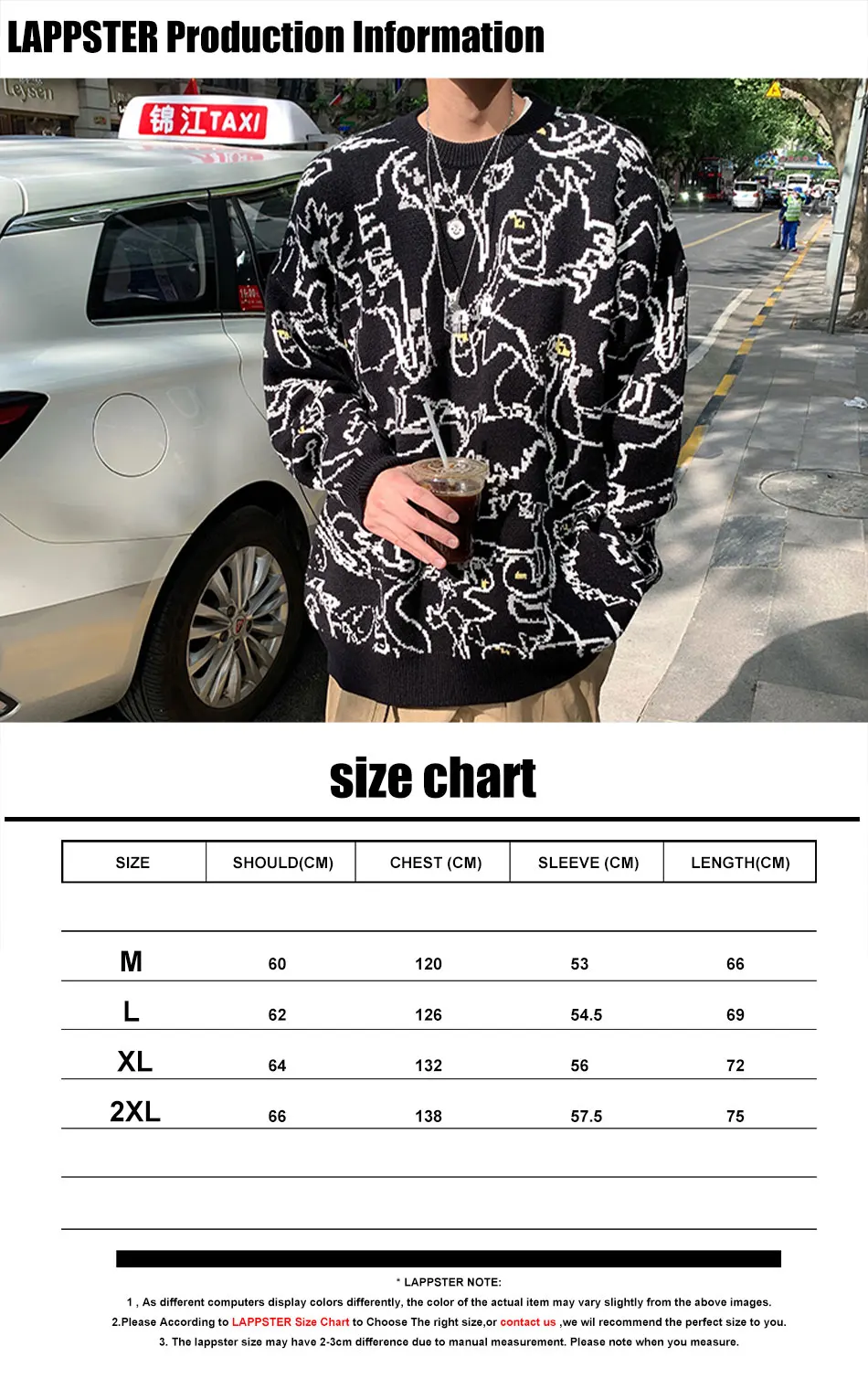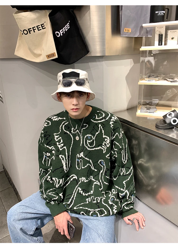 LAPPSTER мужской кавайный динозавр Харадзюку вязаный свитер 2022 мужской s оверсайз винтажный Y2k пуловеры мужской дизайнерский свитер в уличном стиле