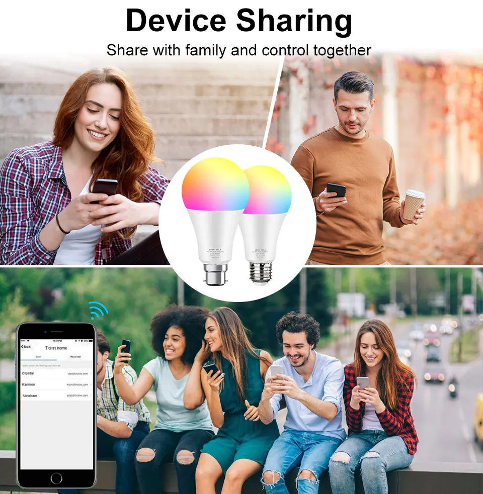 Умная лампочка Zigbee, 15 Вт, светодиодные лампы E27, меняющие цвет, RGB, B22, с регулируемой яркостью, волшебная лампа для работы с Alexa, Google Assistant