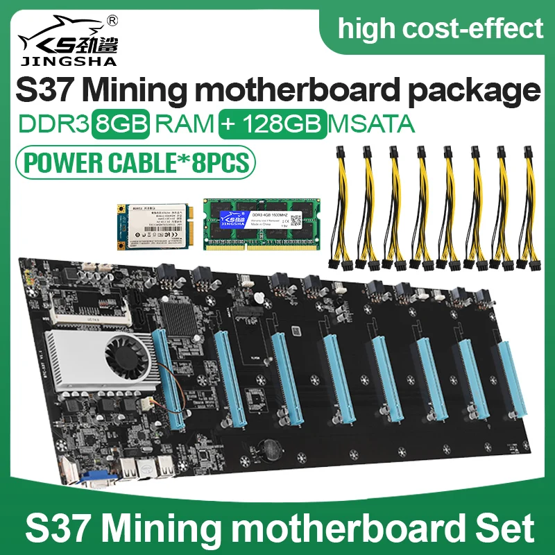 Комплект материнской платы для майнинга с 8 GPU (интервал 65 мм) и памятью ЦП DDR3 с 8 Гб DDR3 1600 МГц ОЗУ 128 ГБ mSATA SSD 8 * кабель питания