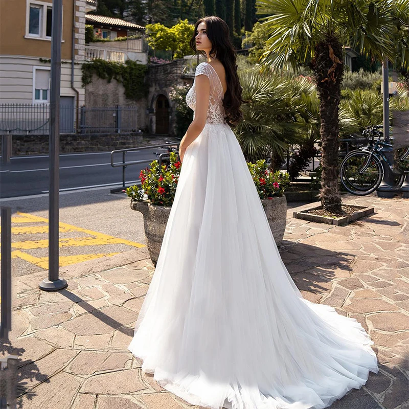 Женское кружевное свадебное платье с V-образным вырезом и аппликацией