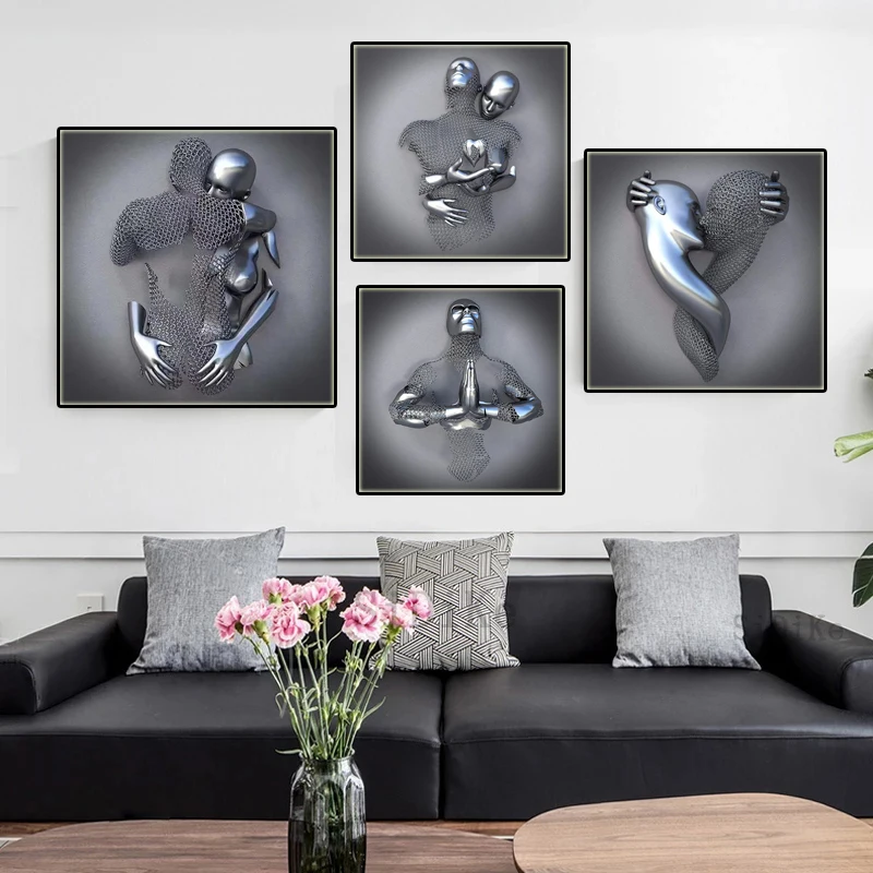 Абстрактная Металлическая фигурка, Картина на холсте, плакаты с романтическими поцелуями для влюбленных, настенные картины, Современное украшение для гостиной, дома
