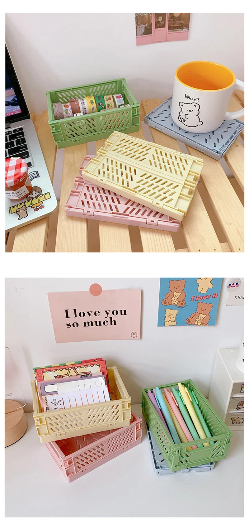Складная корзина для хранения, цветной органайзер для хранения, настольный органайзер для канцелярских принадлежностей, домашний пластиковый контейнер для хранения