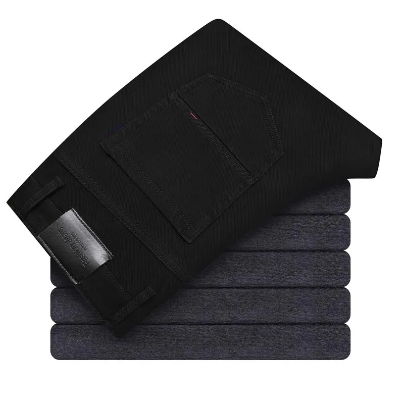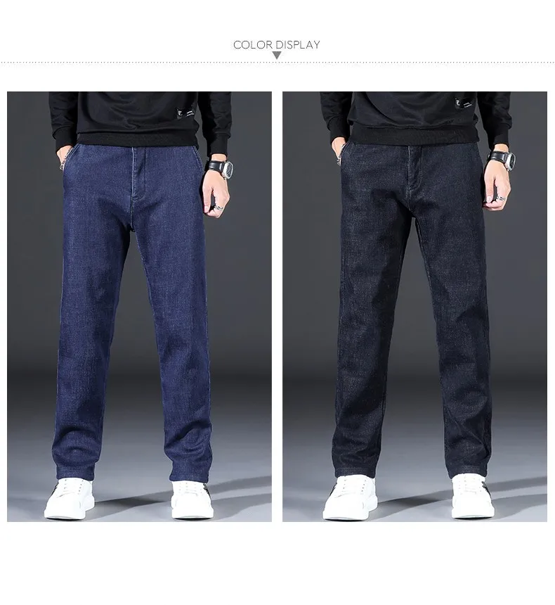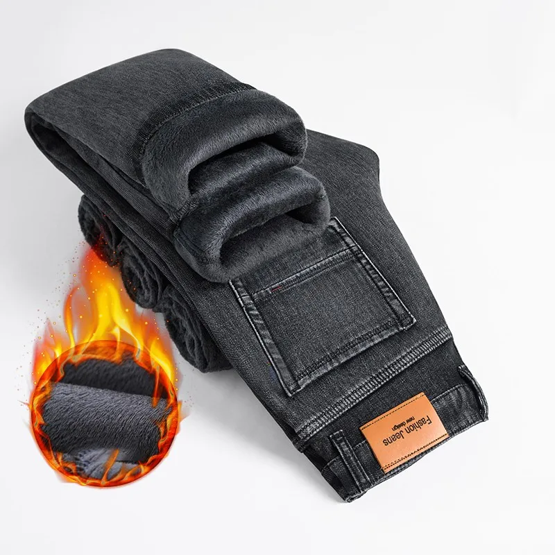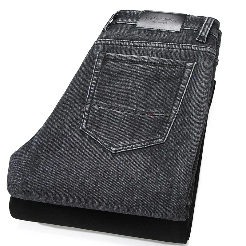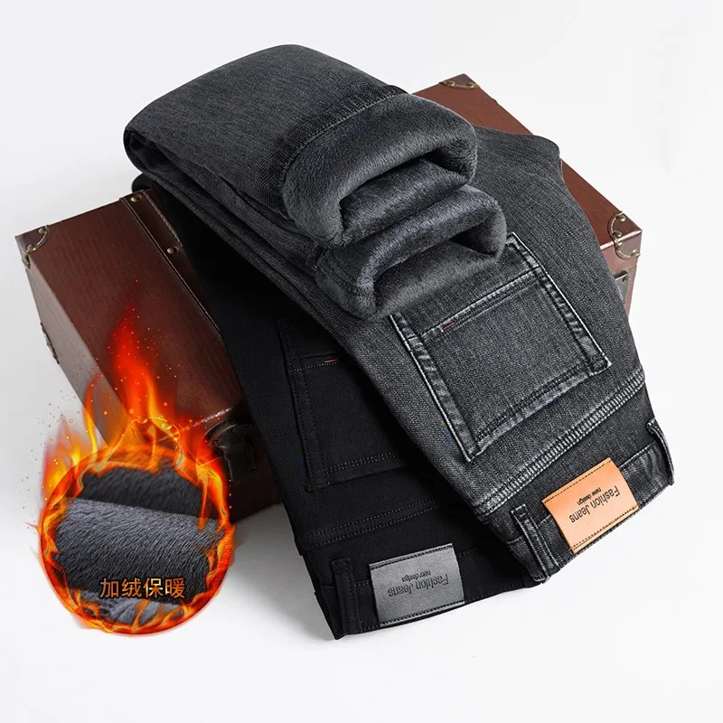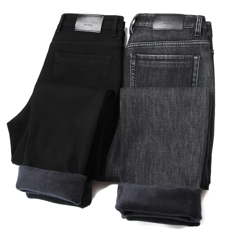 2021 модные повседневные толстые джинсовые брюки, Мужская брендовая одежда, мужские теплые свободные джинсы, Эластичные Обтягивающие черные джинсы