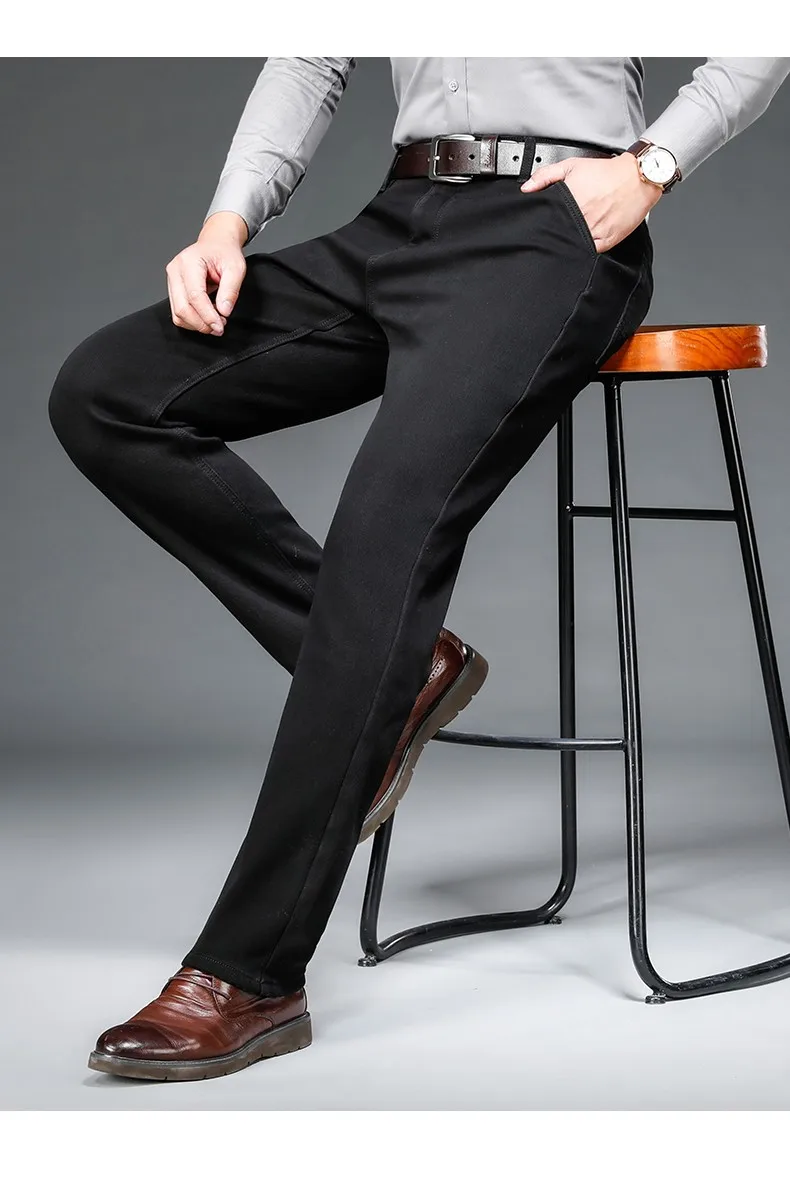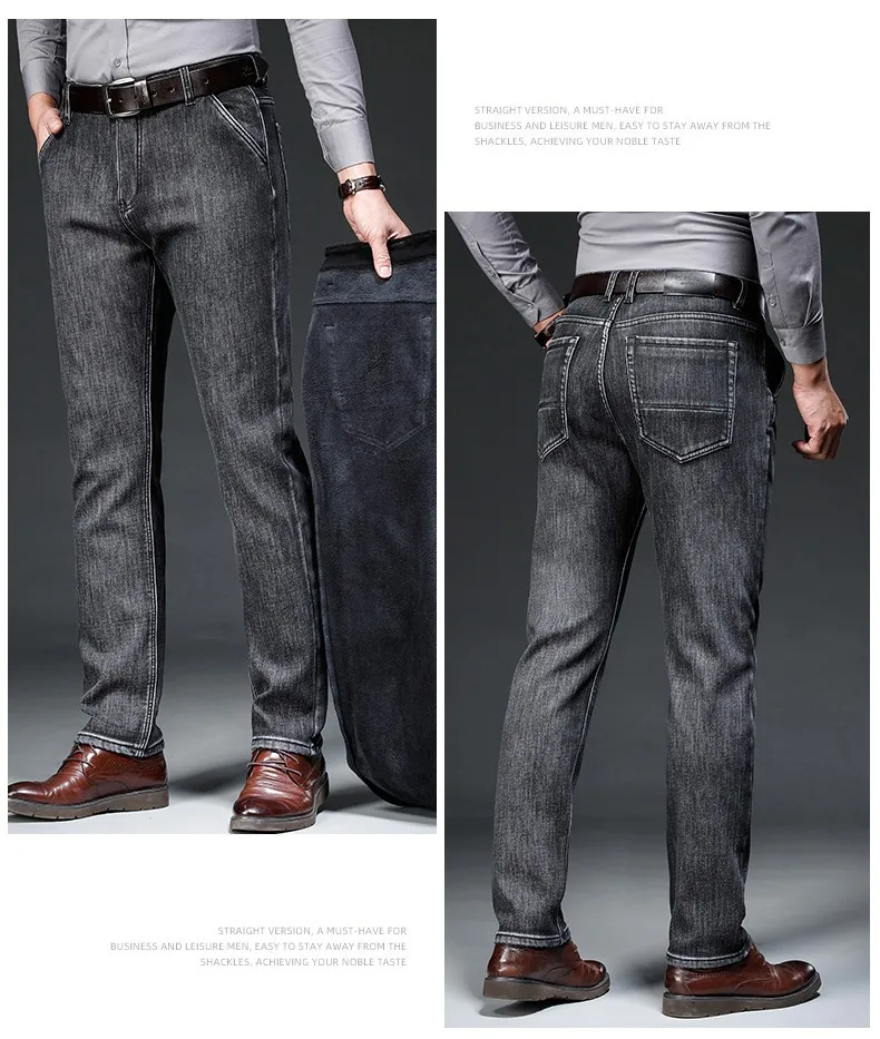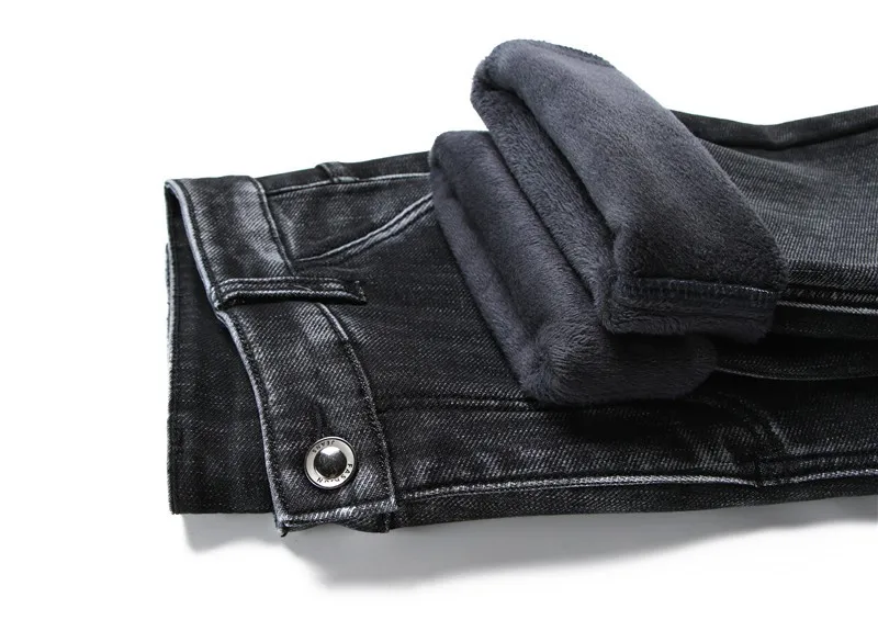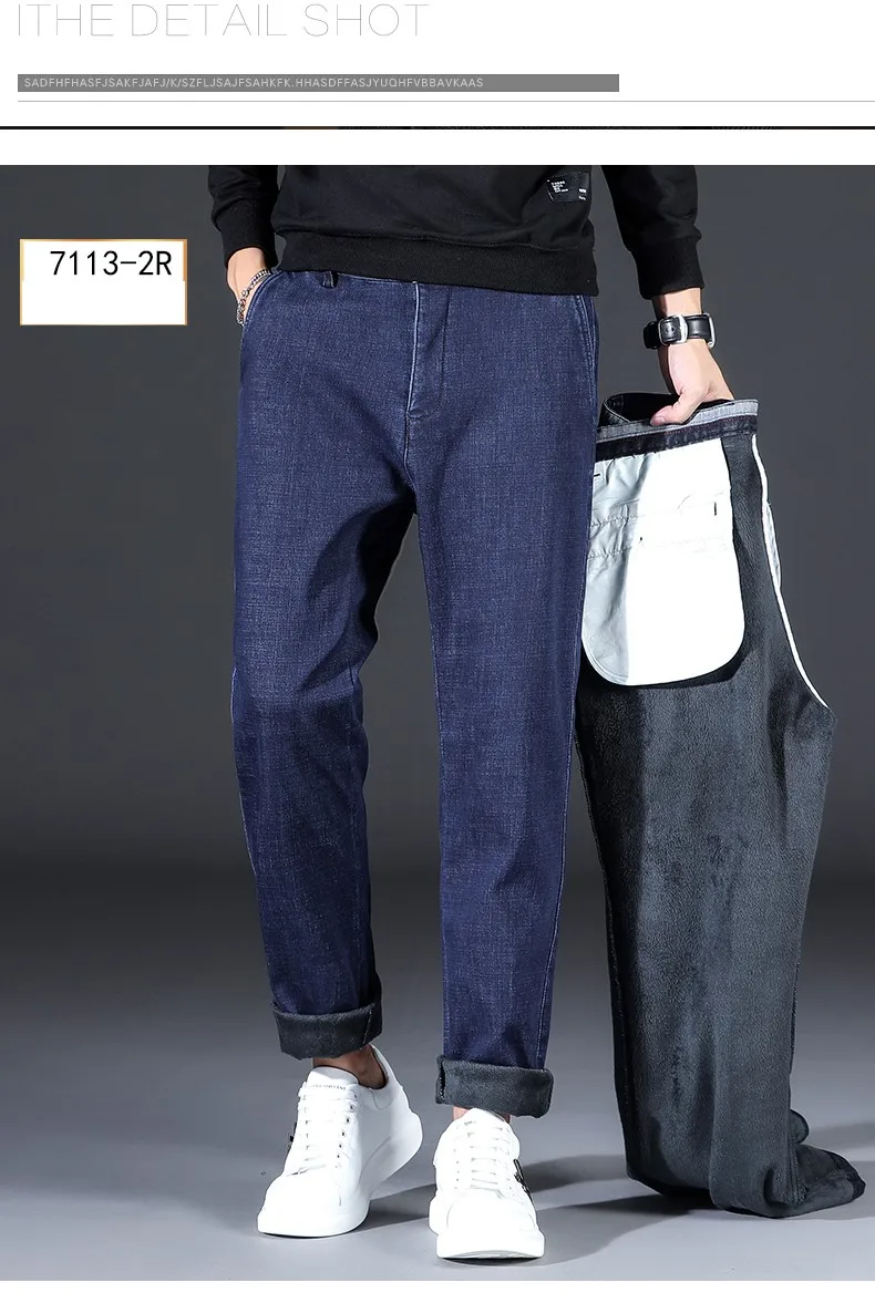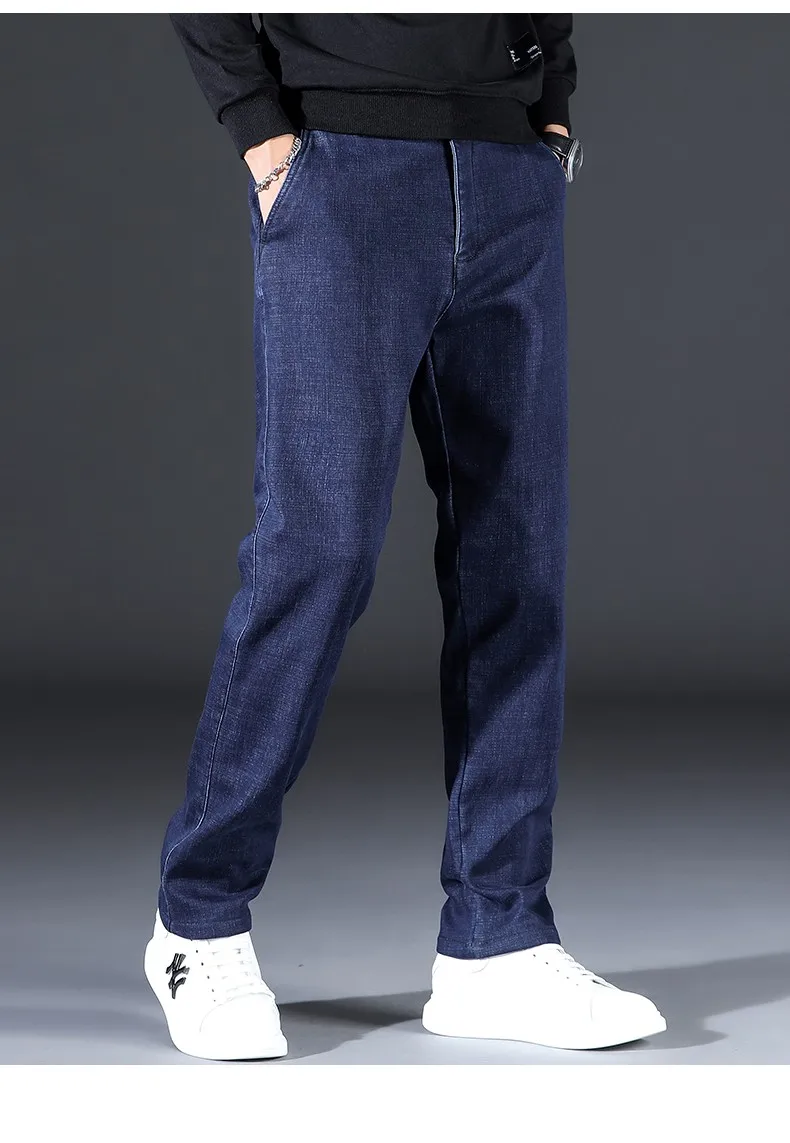 2021 модные повседневные толстые джинсовые брюки, Мужская брендовая одежда, мужские теплые свободные джинсы, Эластичные Обтягивающие черные джинсы