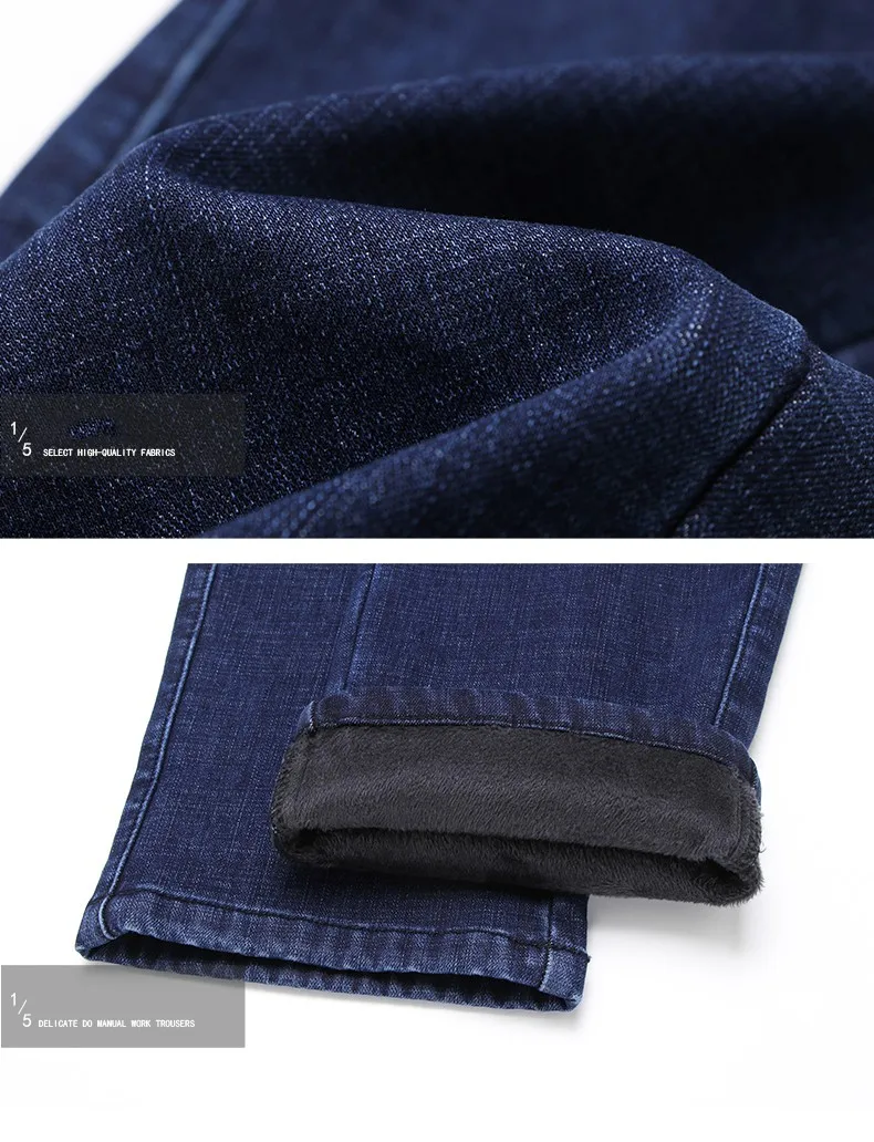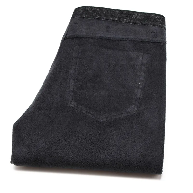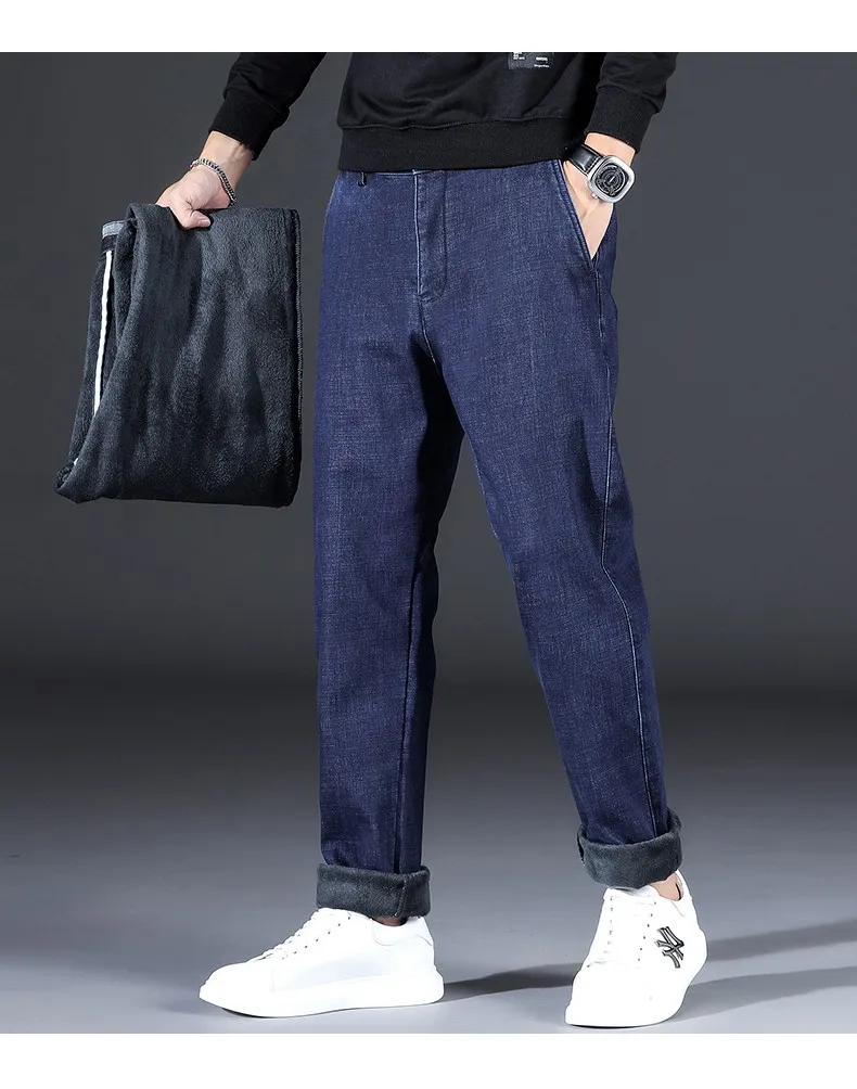 Мужские прямые джинсы с флисовой подкладкой, черные или синие утепл...