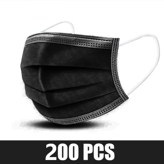 Маски одноразовые черные с 3-слойным фильтром, 10-200 шт.