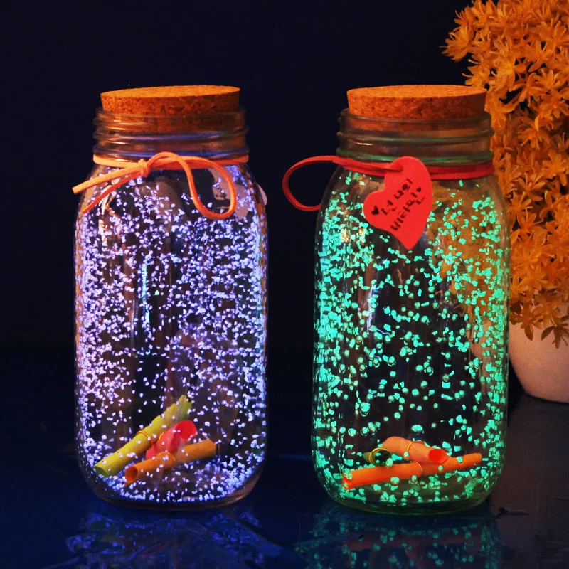 Здесь следует отметить, что визуальный цвет флуоресцентного песка не очевиден, но световой эффект выдающийся, интуитивно понятный цвет фосфора очевиден, но световой эффект слабый. Более того, на следующем шаге, если фосфор приклеен к внутренней стенке бутылки, флуоресцентный песок не приклеивается. Отрегулируйте в соответствии с вашими потребностями