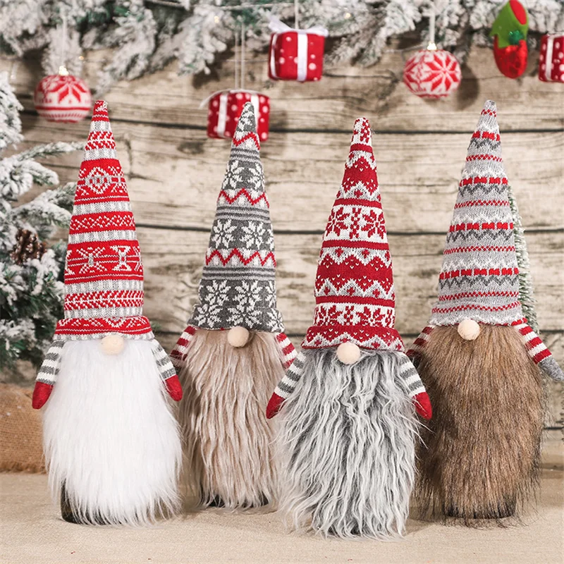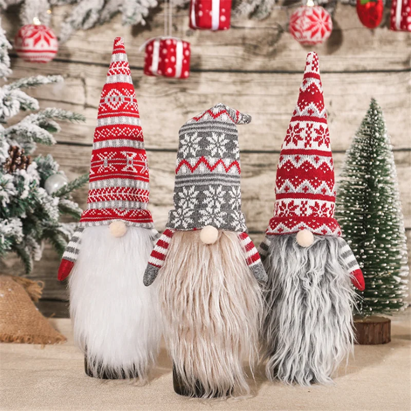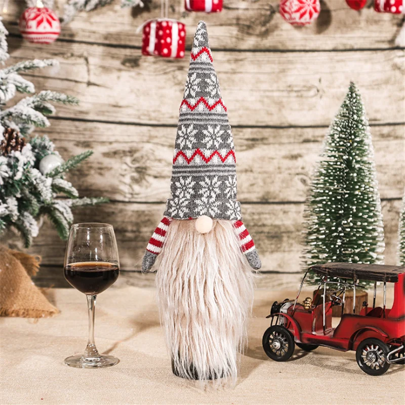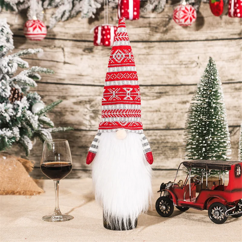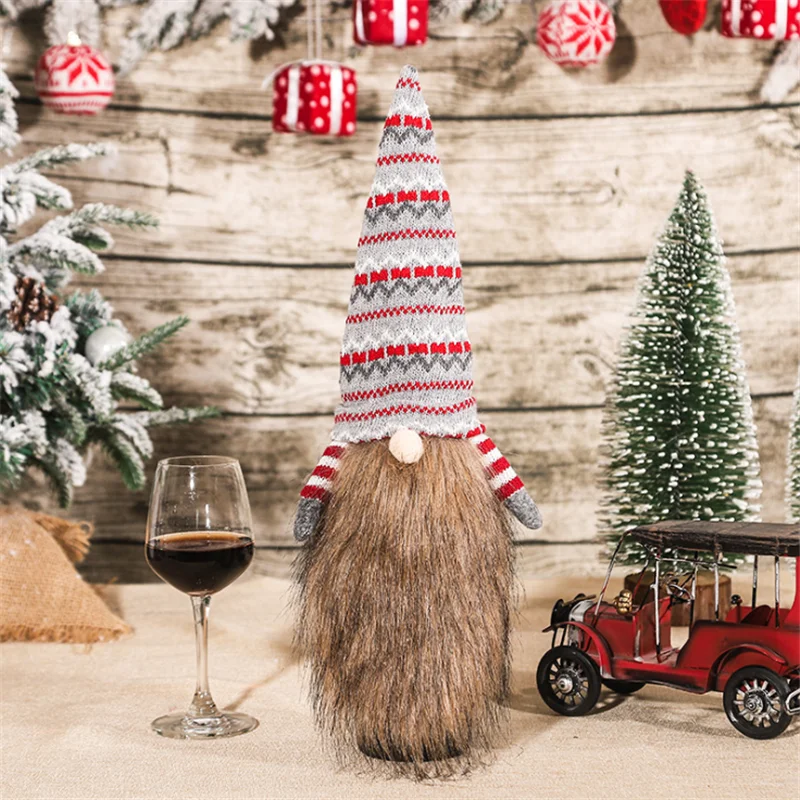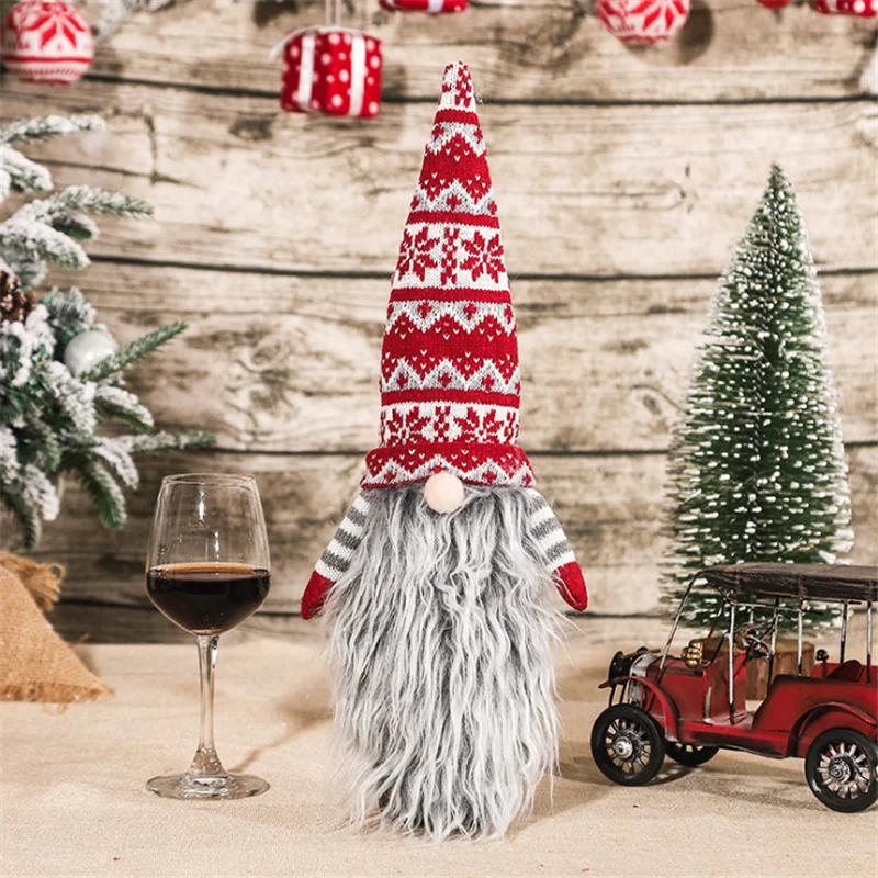 Рождественское украшение для стола, крышка для винной бутылки, вязаная длинная борода, безликая кукла для старины, крышка для винной бутылки, новый год 2022, Рождество