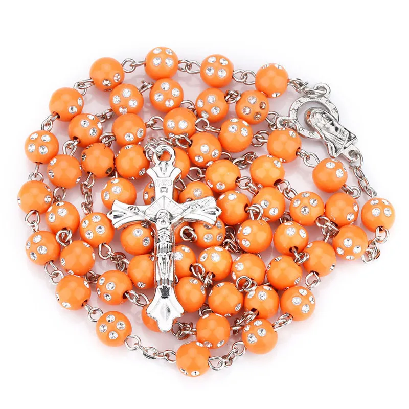 Ожерелье ручной работы из искусственной цепи с крестом-розам, стеклянные бусины-Чокеры в стиле католической христианской молитвы, аксессуары для ювелирных изделий, 22 вида