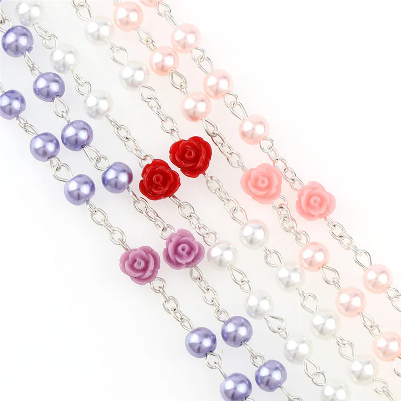 Ожерелье с имитацией жемчуга, 6 мм, крест, Розария, цветок, Дева Ма...