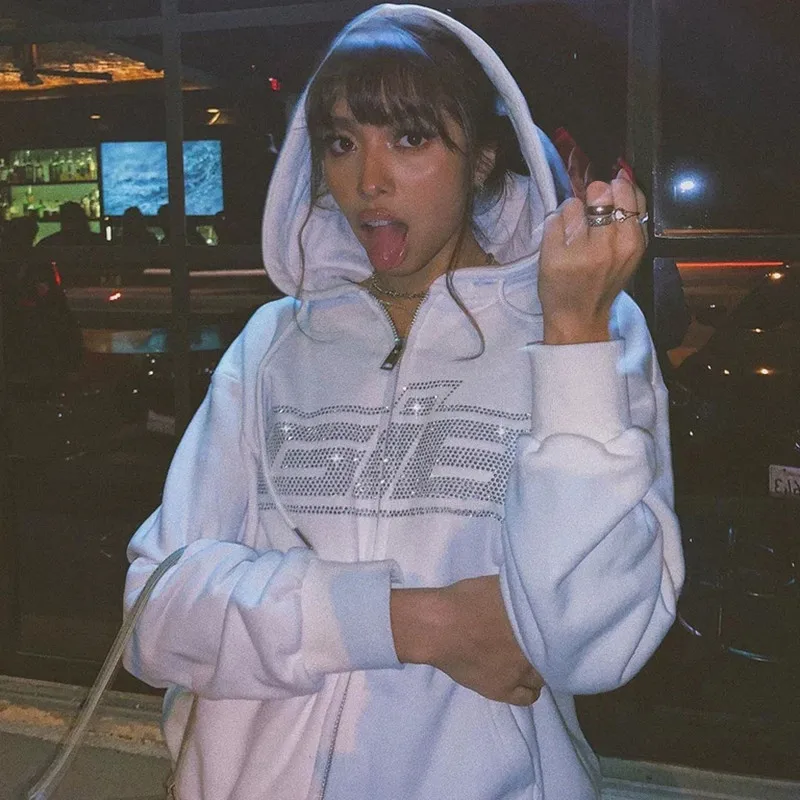 Толстовка Y2K с капюшоном на молнии, худи в стиле Харадзюку, гранж,...