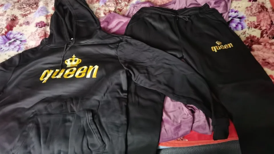 Коллекция 2022 года, Модный комплект спортивной одежды для пары, Модель KING или QUEEN, модель 2 шт., толстовка и брюки