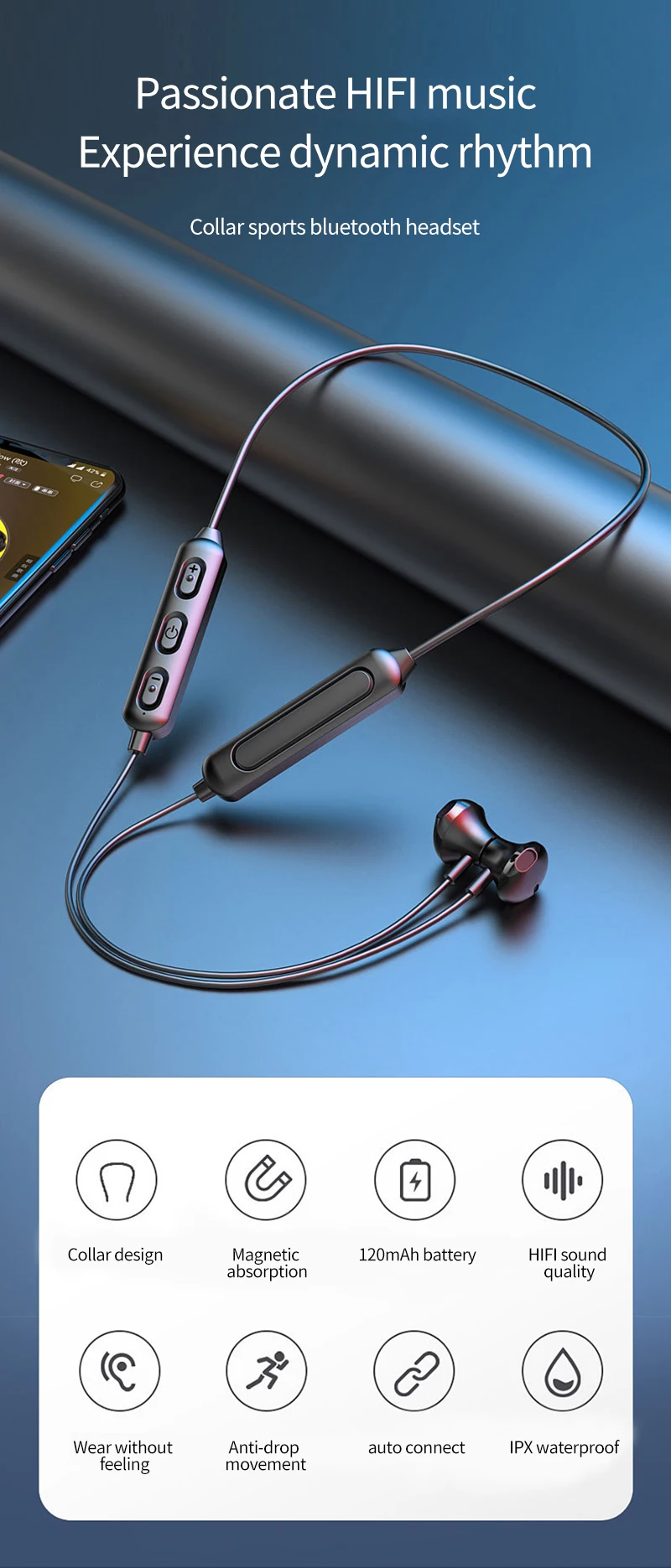 Беспроводные Bluetooth-наушники, магнитные спортивные наушники для бега, IPX водонепроницаемые спортивные наушники-вкладыши, наушники с шумоподавлением