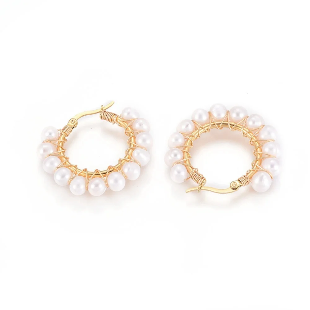 304 серьги-кольца из нержавеющей стали, с натуральным жемчугом, кольцо, белый, золотой