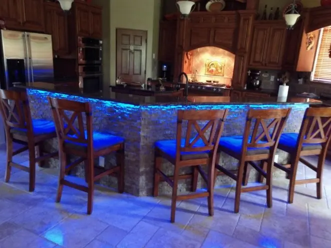 The LED strip lights are super easy to install and provide great ambient lighting. Took about 10 minutes to attach the strip to the underside of our bar (granite bar top). The 3M tape sticks extremely well. I wanted a little extra lighting at our kitchen bar but was hesitant about the LED strips looking cheesey.... I was very pleasantly surprised, the LED's look great and really accent the bar!