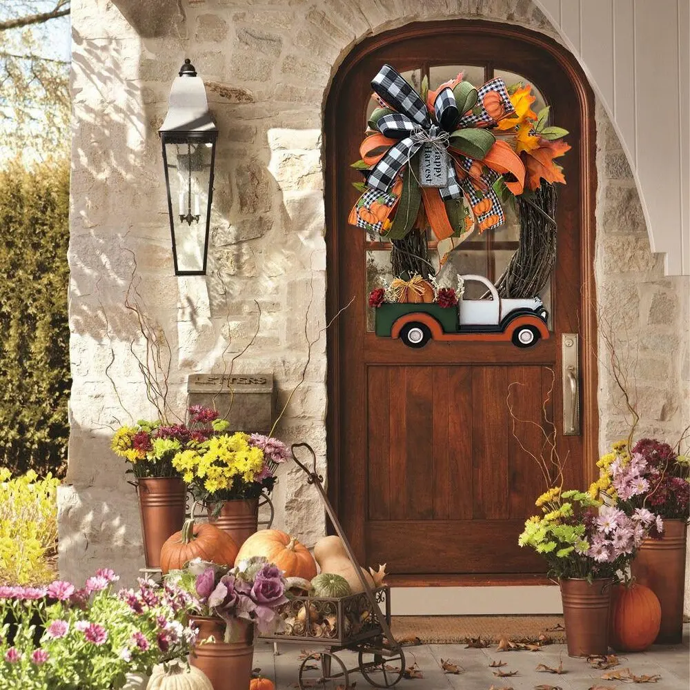 Венок с Тыквой и грузовиком, Осенний венок для входной двери, фермы, свежий знак, Осенний венок, украшение на Хэллоуин, украшение дверной гирлянды
