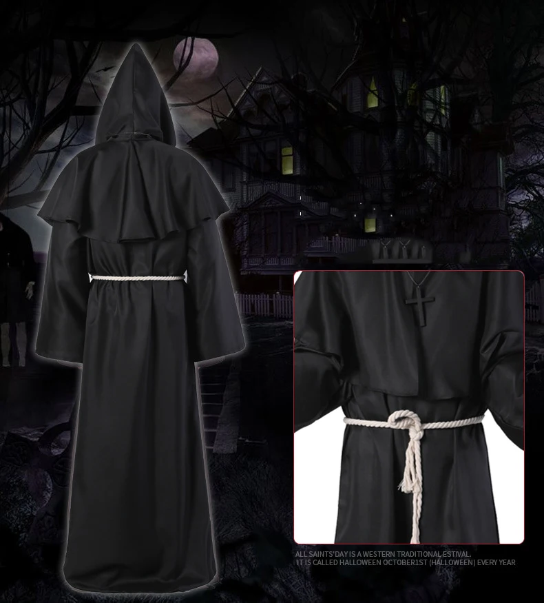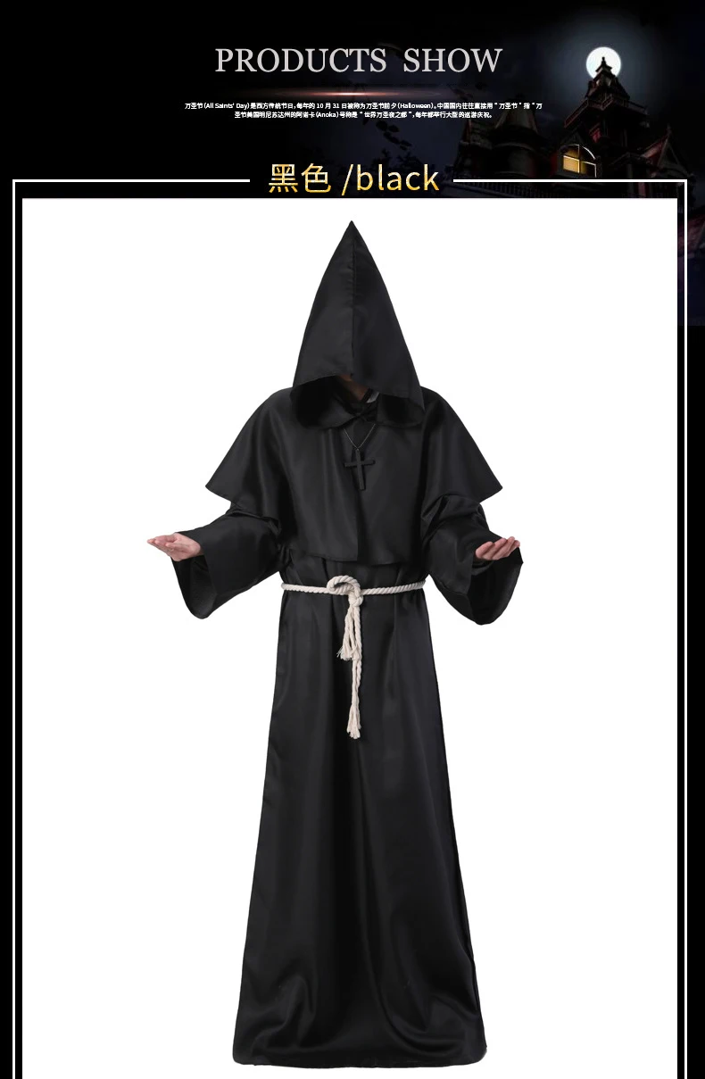 Средневековый монах халат костюм монаха Хэллоуин косплей жрец волше...
