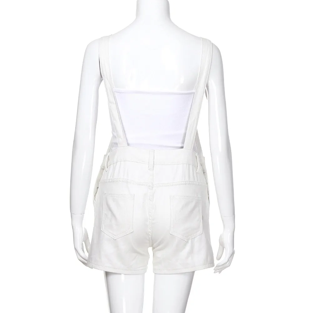 Женский свободный джинсовый комбинезон с дырками, джинсовые шорты, комбинезон