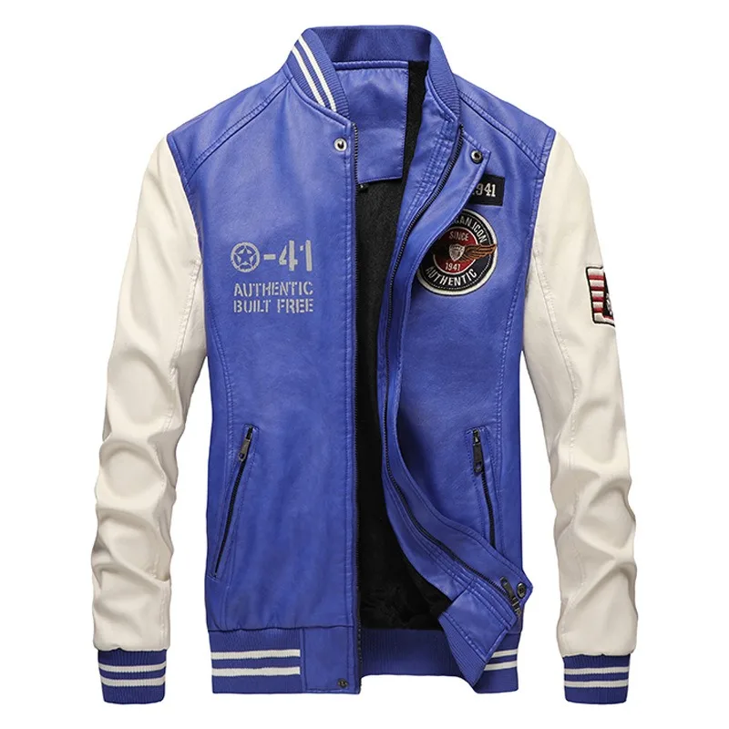 Новая кожаная куртка, Мужская куртка-бомбер, мотоциклетная флисовая...