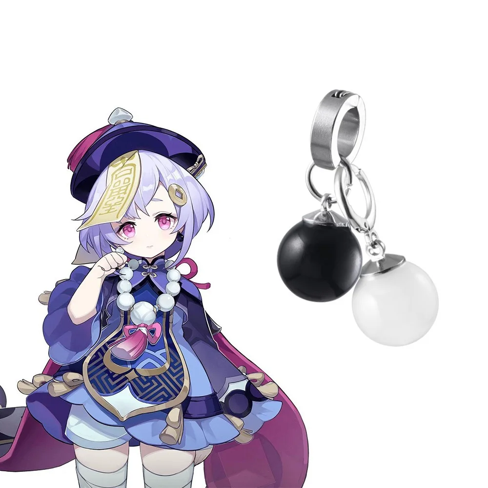 Серьги QiQi для косплея из игры Genshin Impact, 1 пара, черно-белые клипсы для ушей, Qiqi аниме, Хэллоуин, реквизит для косплея