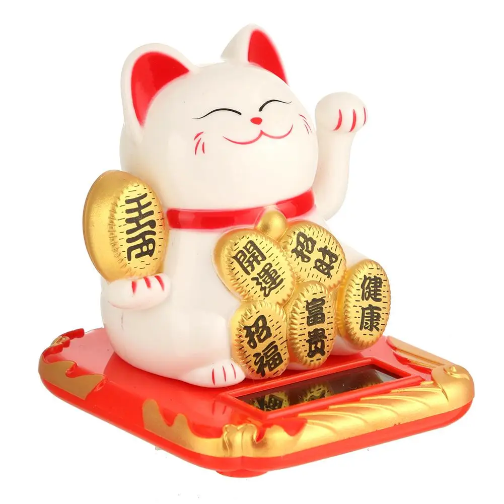 Китайский Кот на солнечной батарее манэки Неко богатство машет рукой встряхивая удачу Добро пожаловать милые фигурки скульптура кошки декоративная статуэтка