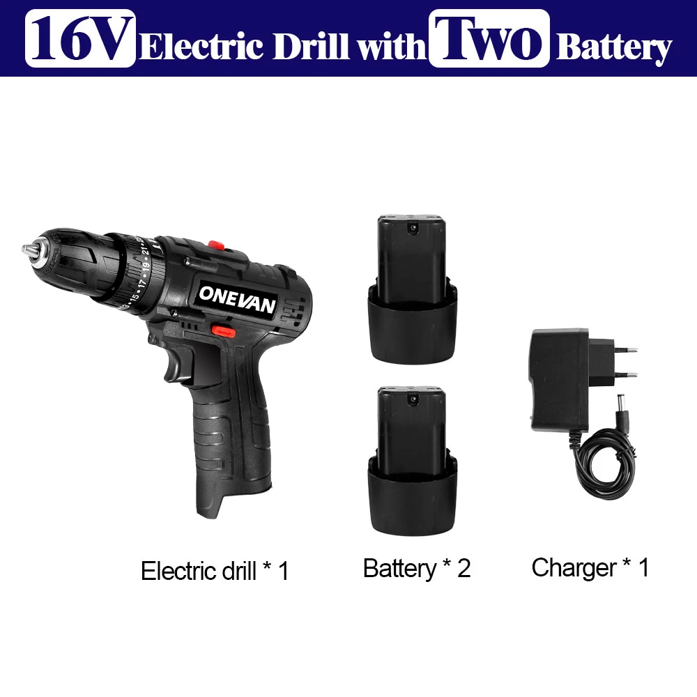 Электрическая дрель 32-40 нм, аккумуляторная электрическая отвертка, перезаряжаемая литиевая батарея, 2 скорости, электроинструменты 12 в 16 в 21 в, ручная дрель