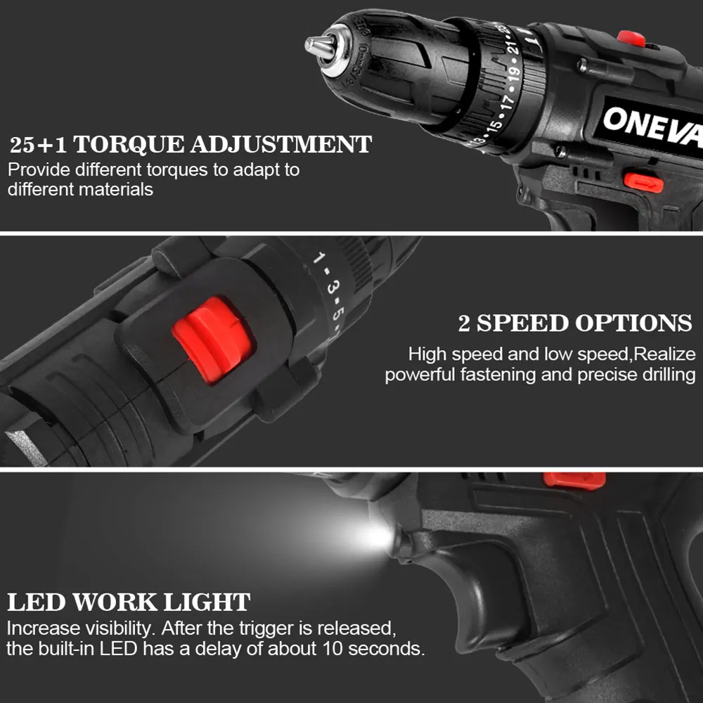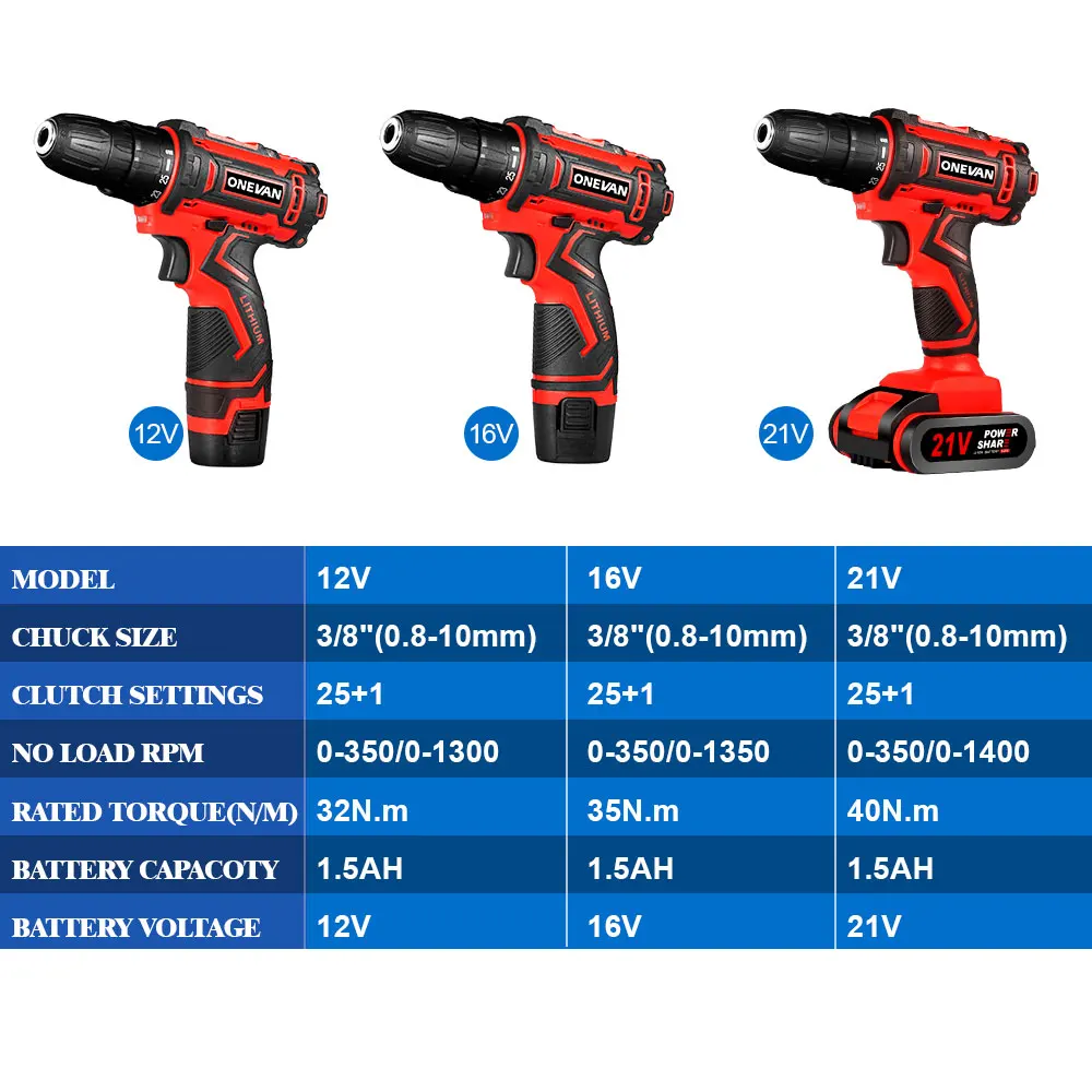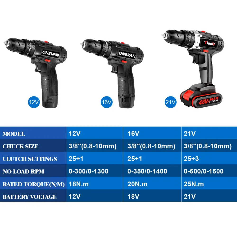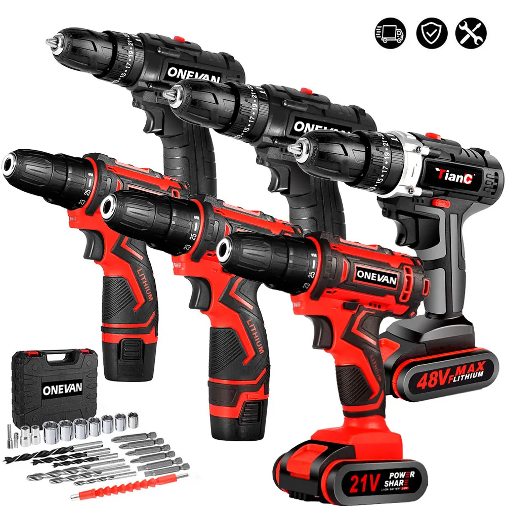 32-40N.m Электрическая дрель электрическая отвертка Перезаряжаемые литий Батарея 2 Скорость Мощность инструменты 12V 16V 21V ручная дрель
