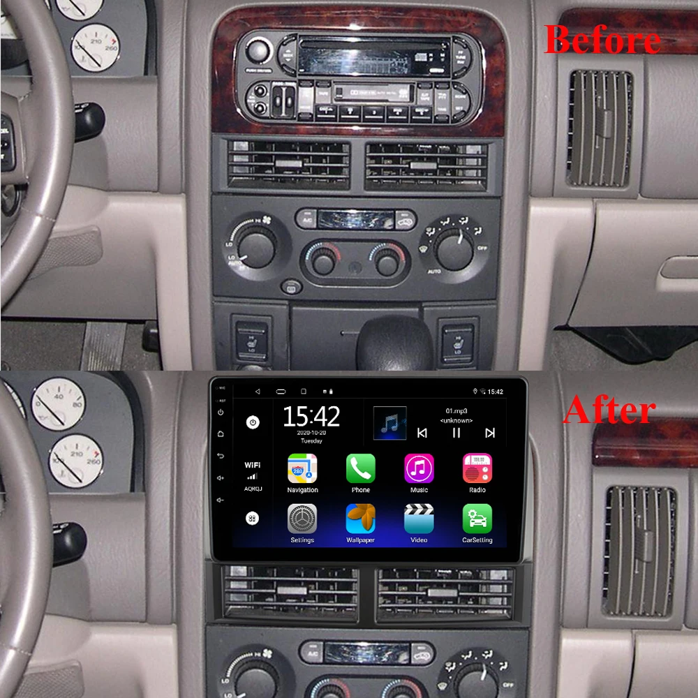 Автомобильный мультимедийный стереопроигрыватель для Jeep Grand Cherokee, 1998-2005, 9 дюймов, Android, 4G, Carplay, 2 Din, GPS, навигация, головное устройство с рамкой