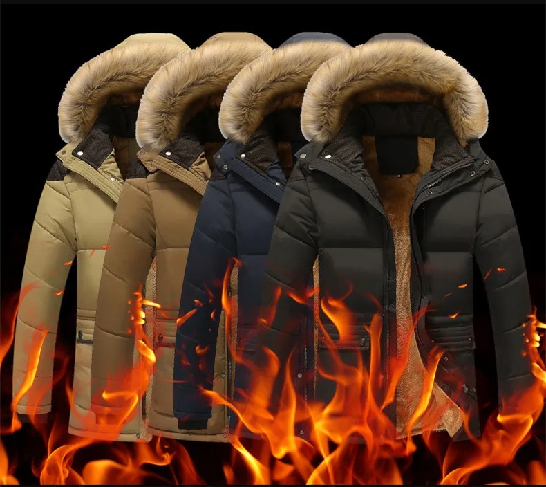 Мужская парка с меховым воротником, зимняя теплая Толстая хлопковая...