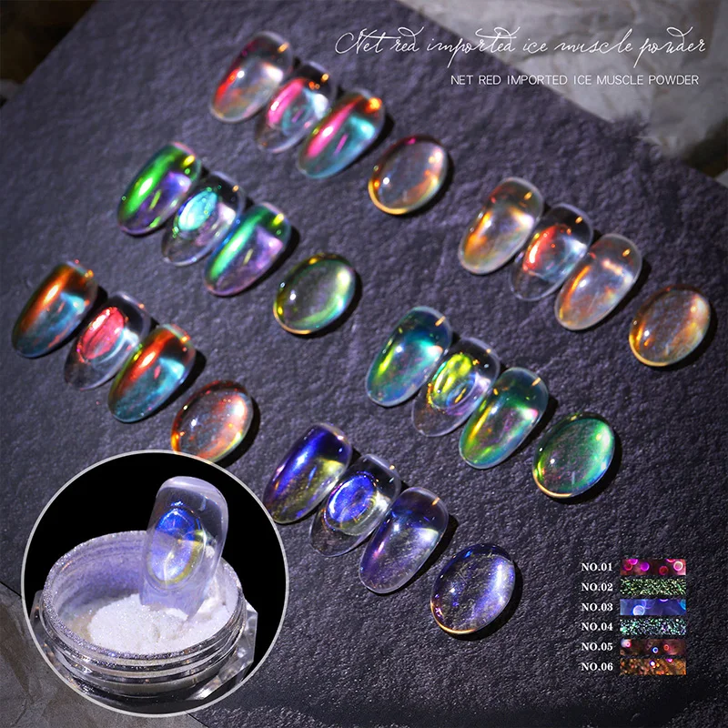 1 коробка, порошок для ногтей Aurora, блестящий Блестящий Прозрачный порошок для погружения, Радужный зеркальный хромовый Пигментный Порошок для маникюра
