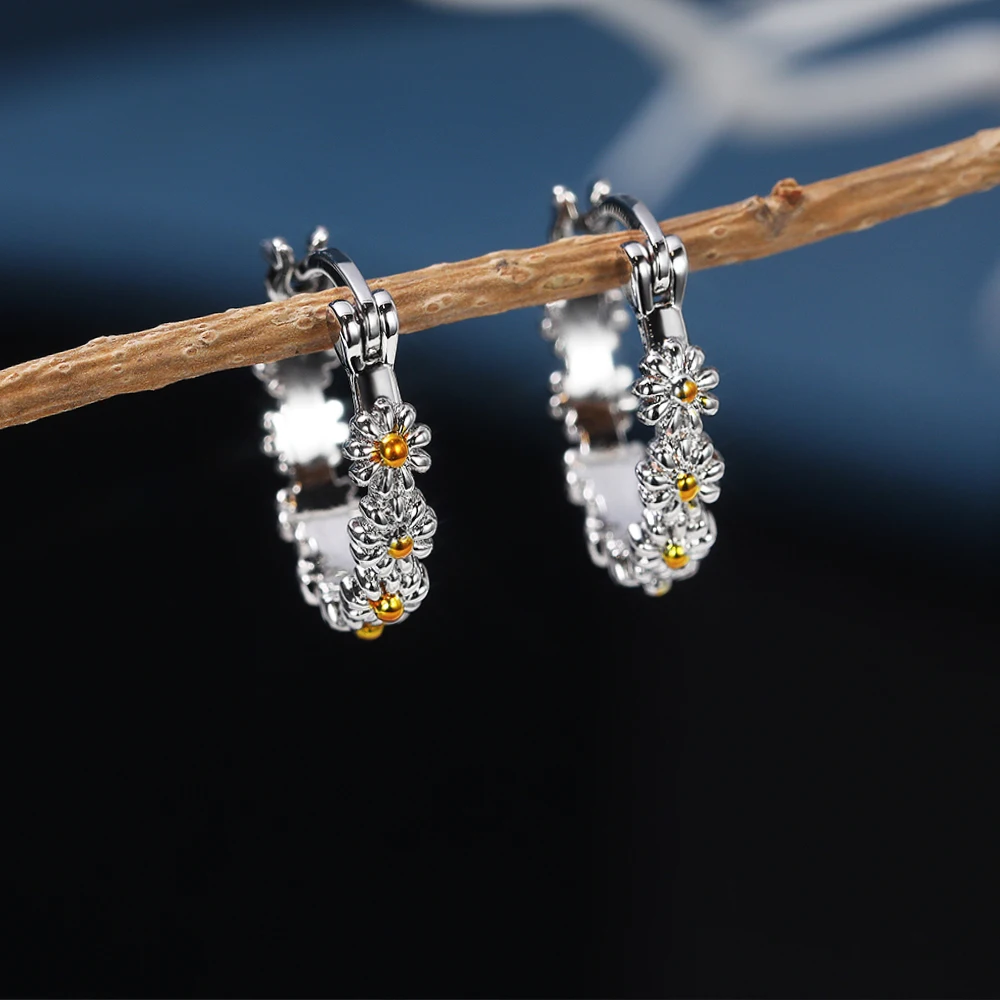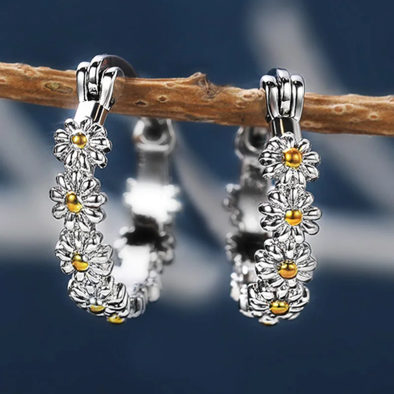 Изящные серьги-кольца с маргаритками для женщин Простые Стильные универсальные аксессуары для девушек маленькие круглые модные ювелирные изделия Прямая поставка