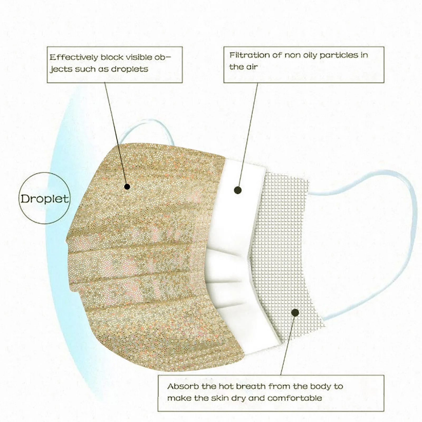 Дышащий материал и Блестящий Узор, что делает его полезным и модным. Признак 4 слоя из нетканого материала, дизайн, обеспечивает некоторые меры защиты от пыли, автомобильный отходящий газ, пыльцу и т. д.