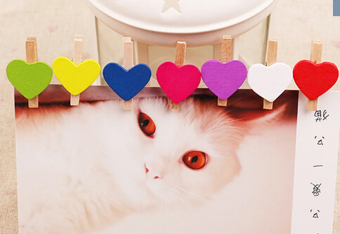 3 см 50 шт. деревянные цветные любовные сердца фото клипсы для запи...