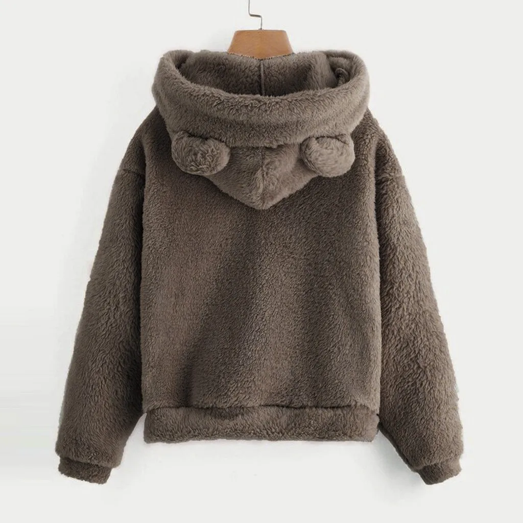 Женская флисовая толстовка с длинным рукавом, теплый Пушистый пуловер с капюшоном в форме медведя