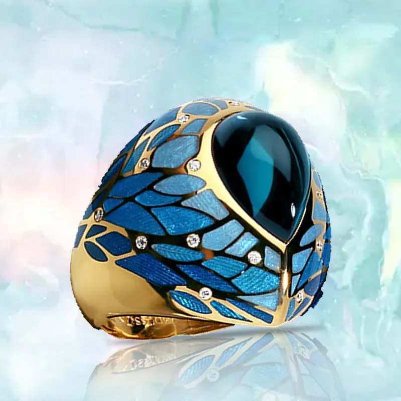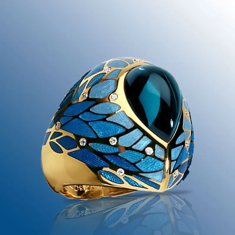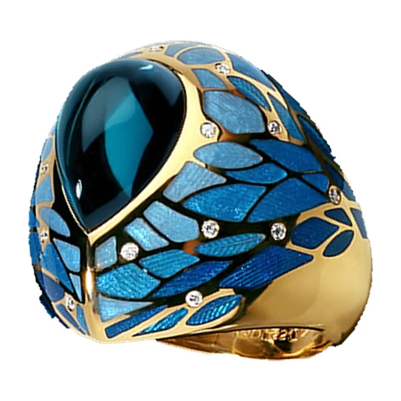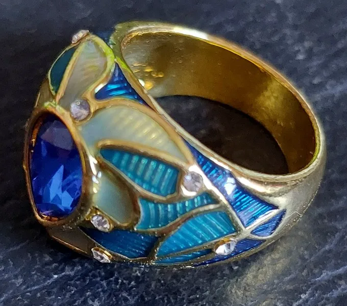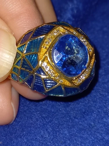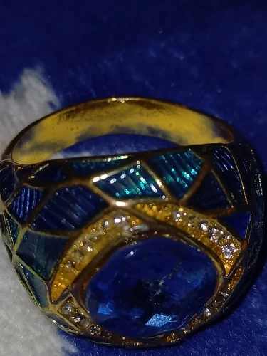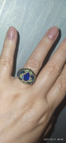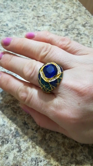 Реальность не соответствует фото продавца. Камень в кольце другой формы не кабашон, а граненный и цвет на фото более похож на цвет морской волны, а по факту темно-синий пластик. Но за эту цену простительно. Что понравилось больше, что эмаль нанесена аккуратно и цвет изумрудный очень красивый.
