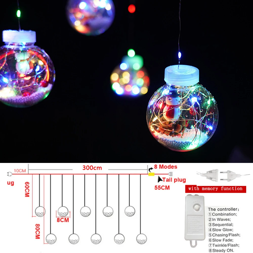 СВЕТОДИОДНАЯ Гирлянда-занавеска в виде рождественского шара, новый ...