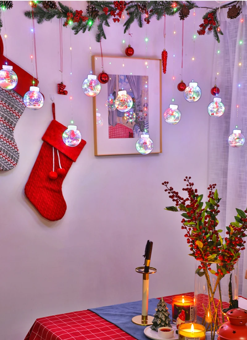 Гирлянда с шариками, занавеска для комнаты, новогодний и Рождествен...