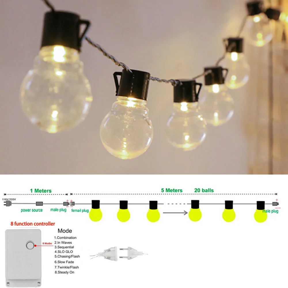 5 м 20 шариковых ламп AC 220 В светодиодный садовый светильник моло...