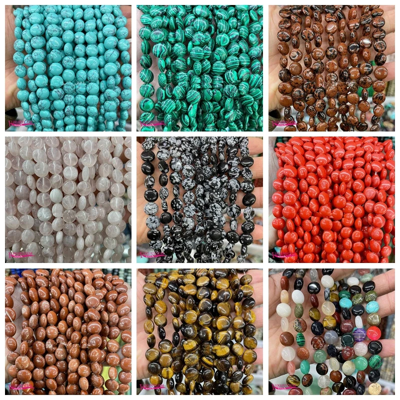 Натуральный разноцветный цветок зеленый камень свободные бусины Высокое качество 10 мм Гладкая плоская форма монеты DIY ювелирные аксессуары 38 шт. a3653