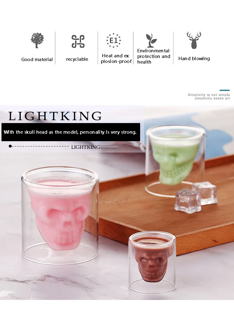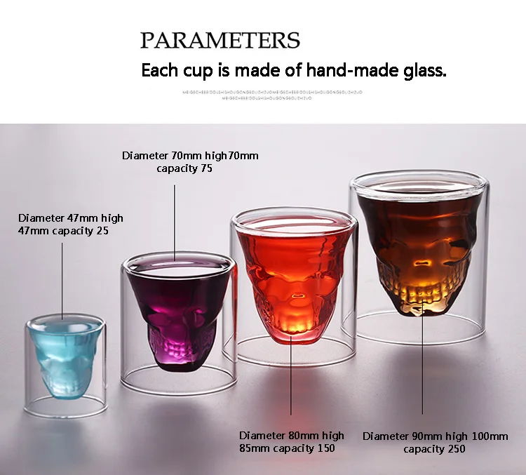 4 шт. череп Набор Винных Бокалов двойной прозрачное стекло пива для...