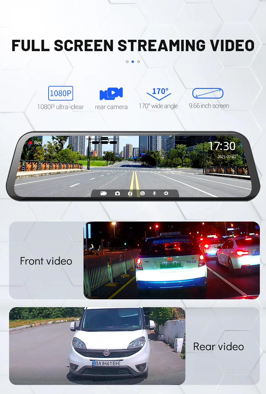 Оснащен двумя камерами, передними FHD потрясающими деталями, задним HD большим широкоугольным объективом без слепых пятен, захватом номерных знаков, дорожных знаков и другими критическими деталями на дороге.