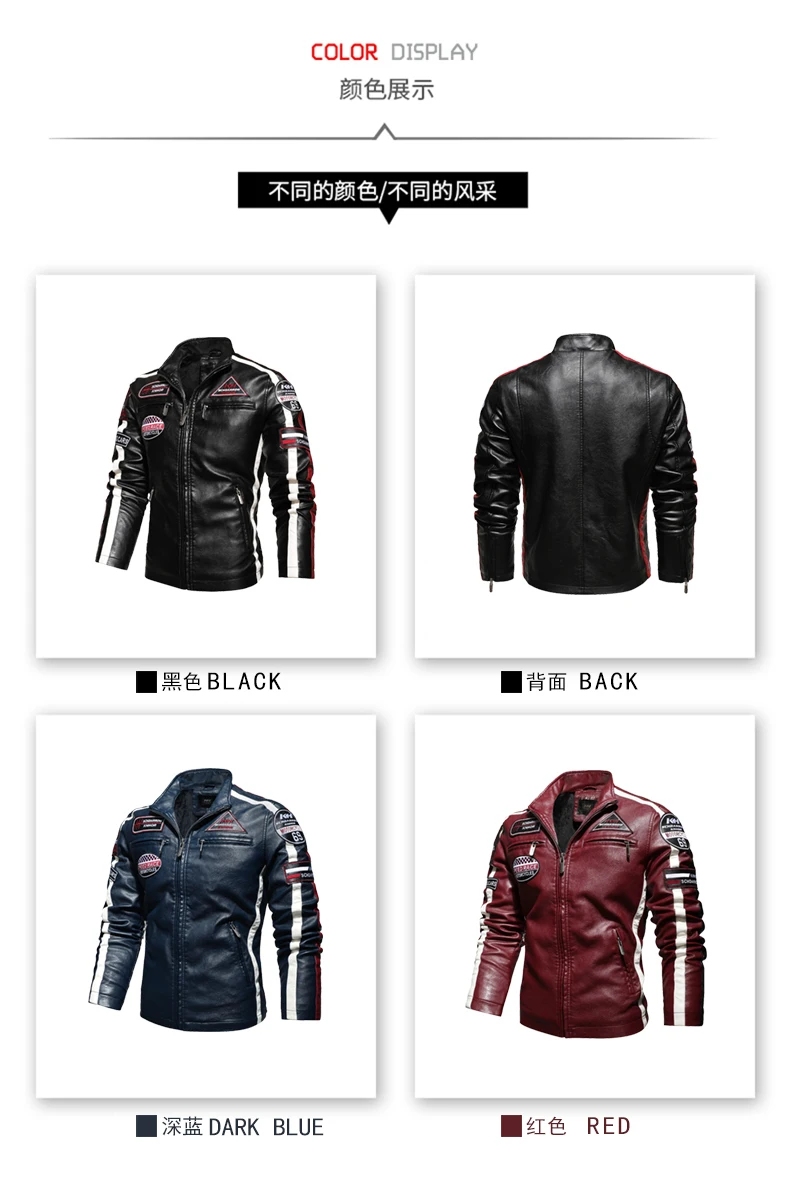 Мужская зимняя мотоциклетная куртка из искусственной кожи, плотная ...
