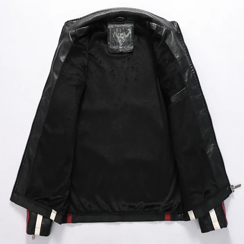 Модная кожаная мужская куртка в полоску, новинка зимы 2020, бархатн...