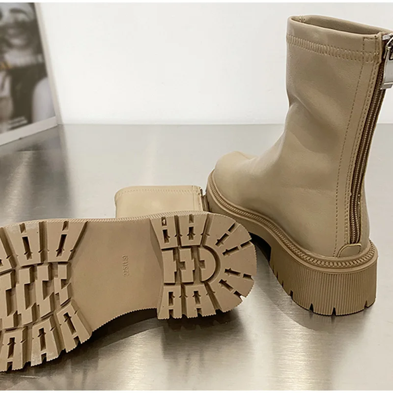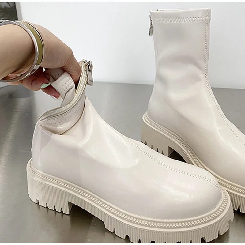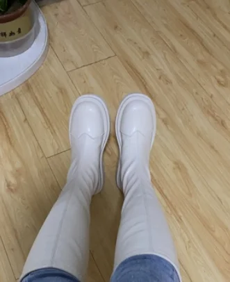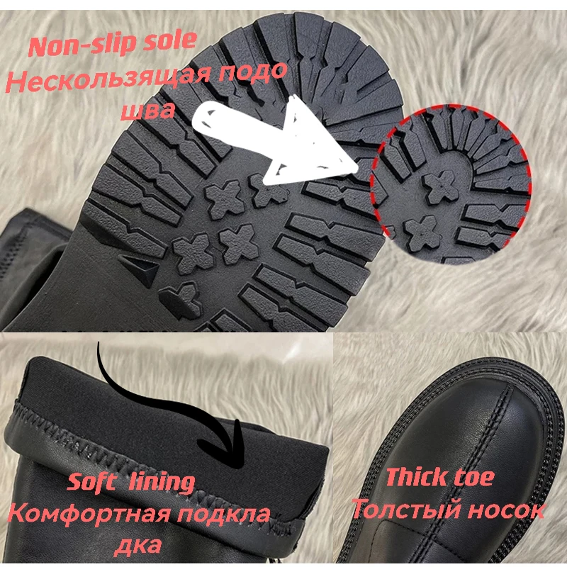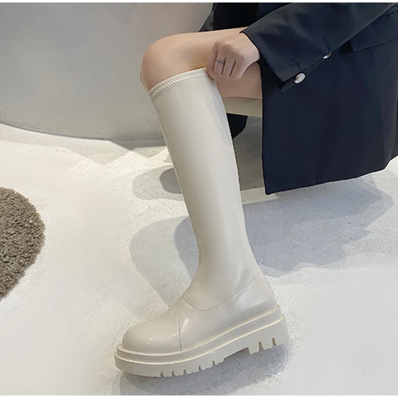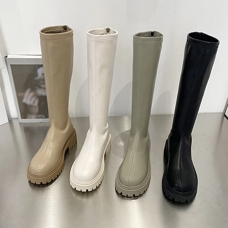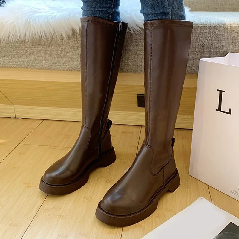 Женские высокие сапоги до колена из мягкой кожи, на толстой подошве, модные водонепроницаемые плюшевые сапоги с круглым носком, осень 2021