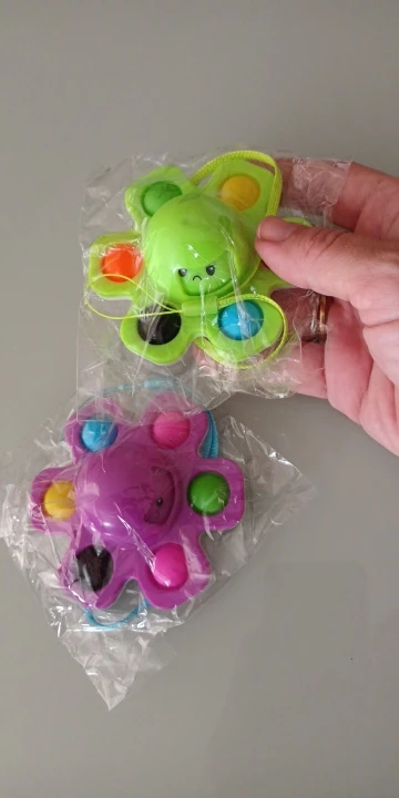 благодарю продавца. игрушки пришли немного меньшего размера, чем я ожидала, но соответствуют описанию. качество пластмассы не самое хорошее, но сносное. пришло две игрушки - фиолетовая и оранжевая, как я и заказывала. запаха противного от игрушек не исходит
